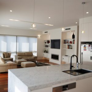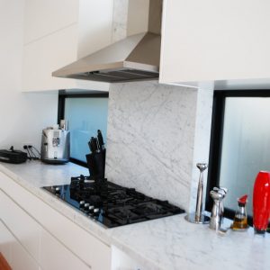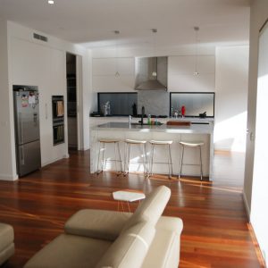 This renovation and extension is highlighted with its rich Australian Spotted Gum Flooring that runs from the front door through to the back living area, it is complemented with the use of natural light using double glazed windows and sharp square set plaster lines. The kitchen is a well-appointed with stunning Marble bench tops and a kitchen design with practical storage and the latest appliances.